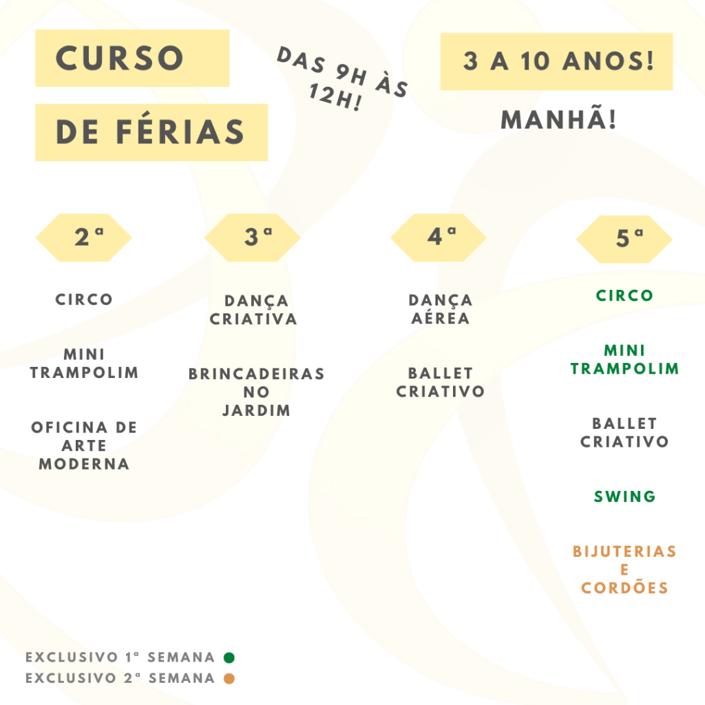 Turma infantil na parte da manhã, com direito a oficina de trampolim, balanço e cordões!